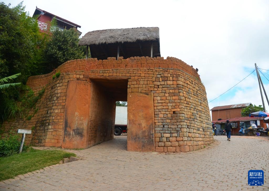 这是4月11日在马达加斯加首都塔那那利佛拍摄的安布希曼加皇家蓝山行宫遗迹主门。