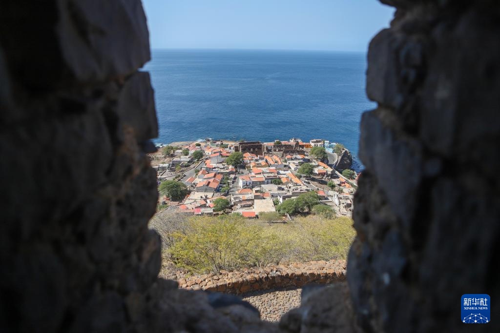 2月7日,从佛得角旧城圣菲利普皇家堡垒的石砌窗口向外望去,下方旧城街区清晰可见。