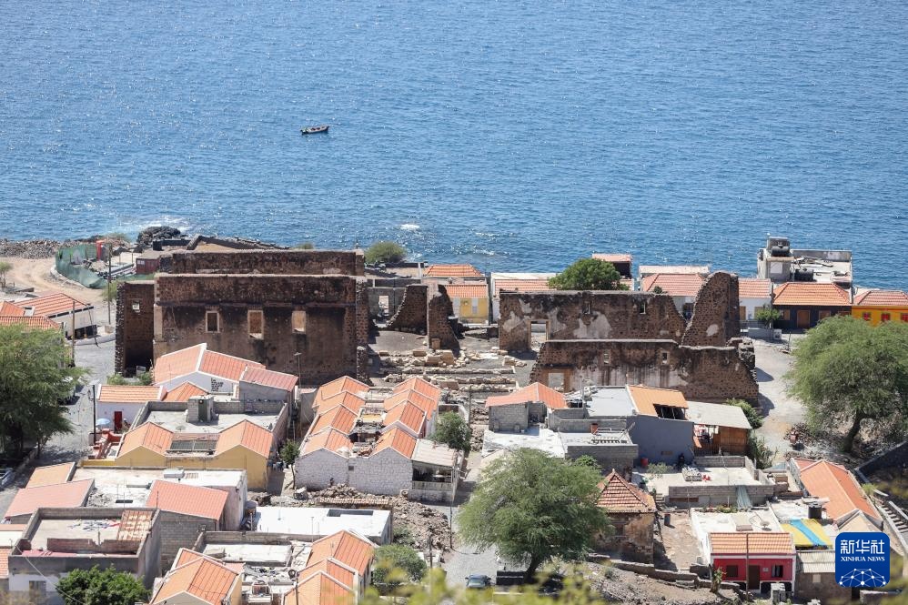 这是2月7日在佛得角旧城拍摄的一处历史建筑遗址与周边民居。