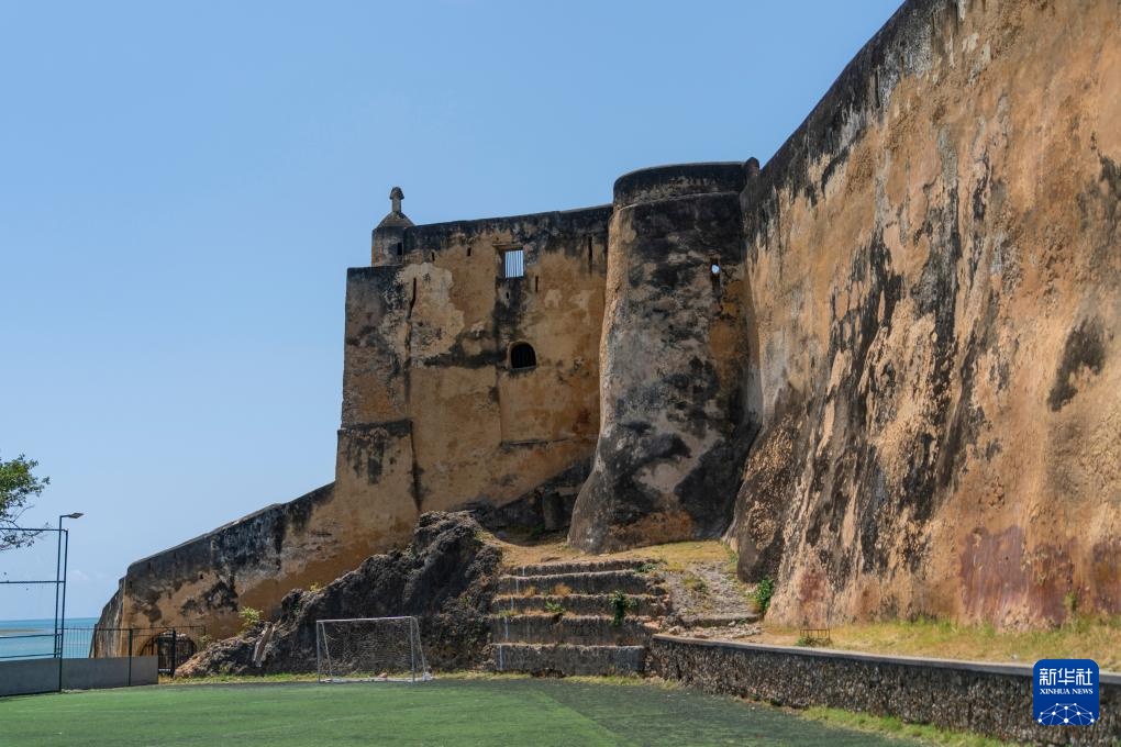 这是2月19日在肯尼亚蒙巴萨老城区拍摄的耶稣堡一角。