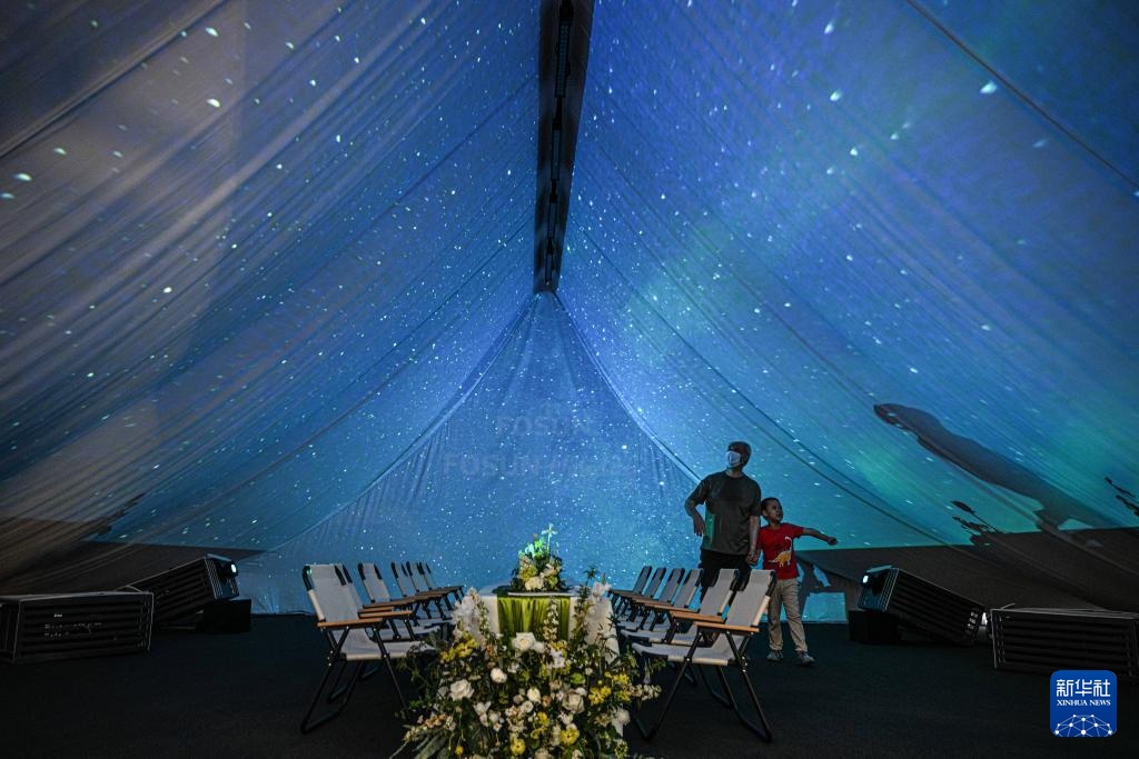 4月18日,参观者在第六届消博会复星展台感受沉浸式度假体验空间。