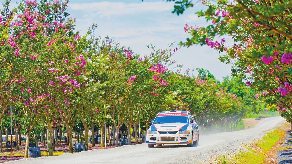 赛车穿过花海赛道。赛事组委会供图