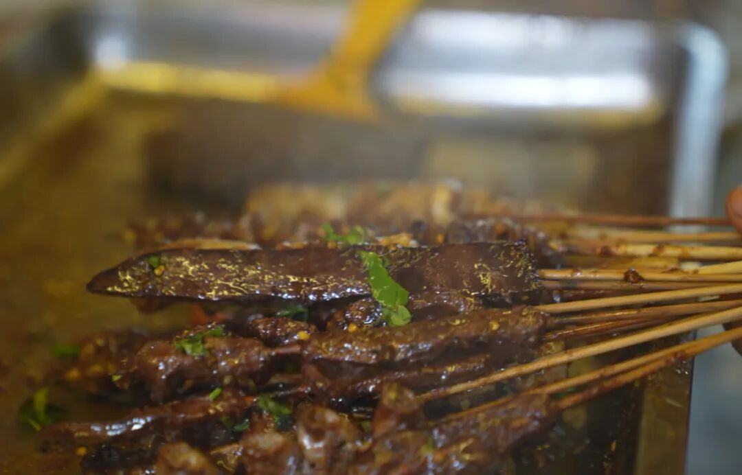 一排排的烧烤摊位上摆满了各色美食,香气缭绕的烧烤店内,滋滋冒油的佤族烤鱼、炭火烘烤的麻辣牛肉干巴、冰爽甜蜜的柠檬水、软糯可口的糯米饭、酸辣诱人的凉粉等各具特色的美食,扑鼻而来的香味令人垂涎三尺。