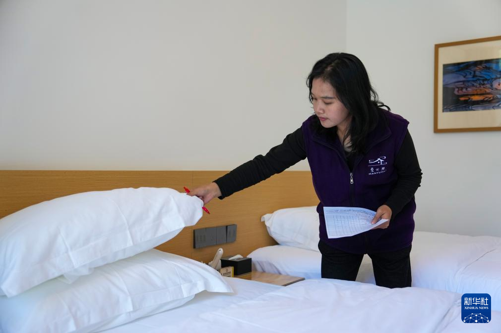 12月20日,曼海村村民、村子运营团队成员赵云芳在民宿内检查。新华社记者 陈欣波 摄